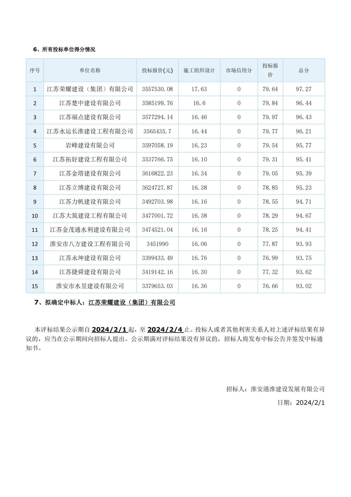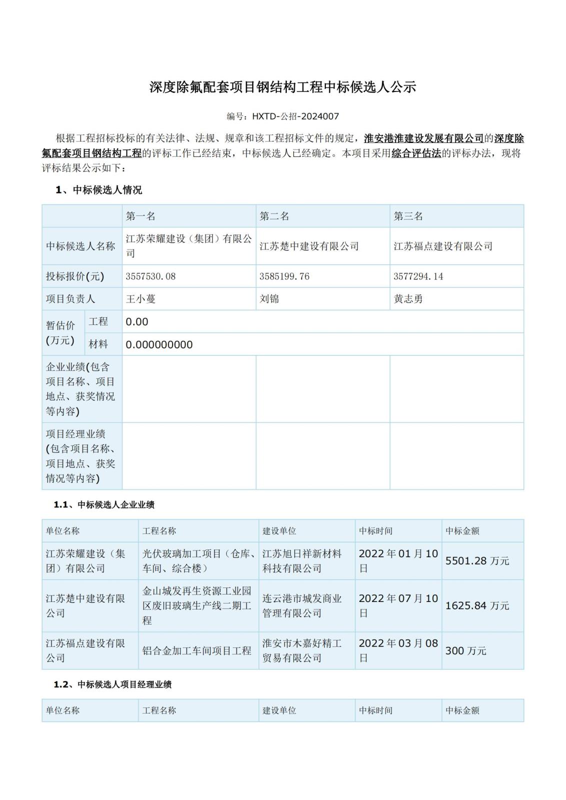 深度除氟配套項目鋼結構工程中標候選人公示